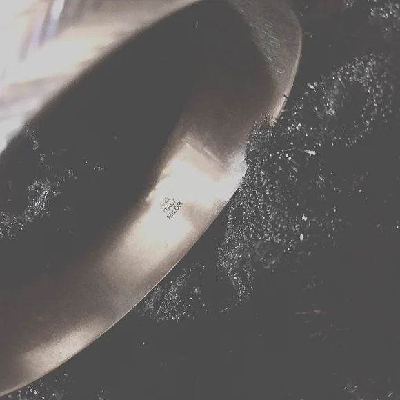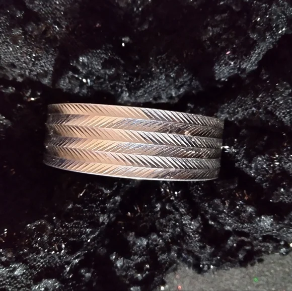 This wider width bangle is absolutely beautiful. The diamond cuts make it very sparkly & veryspecial. Slips over hand, no opening stamped 925 Milor Italy. Excellent condition.