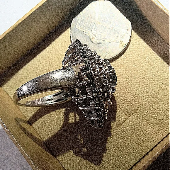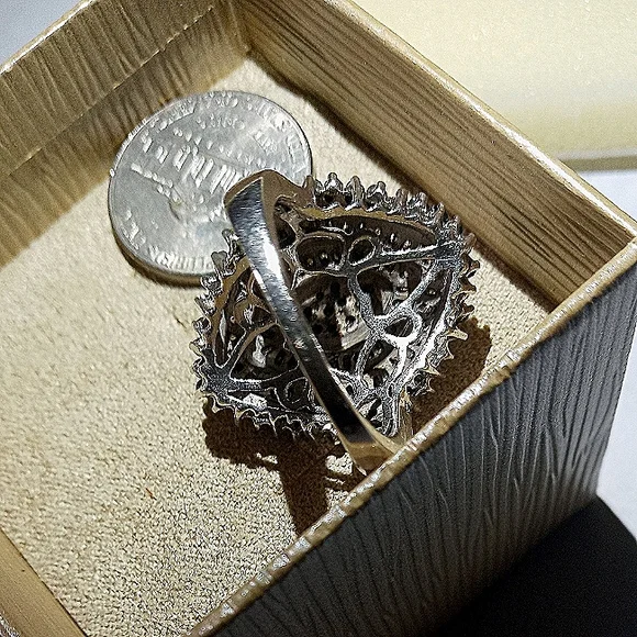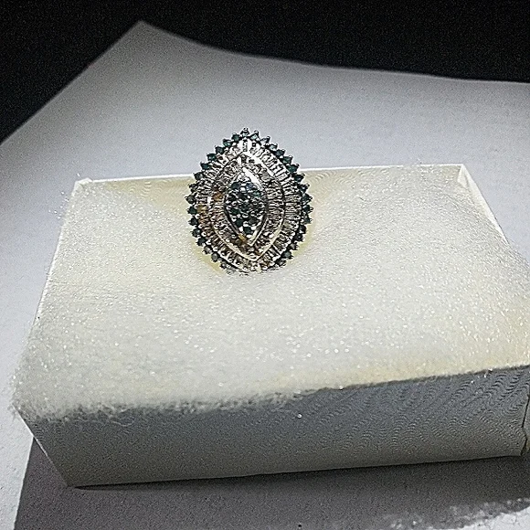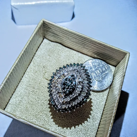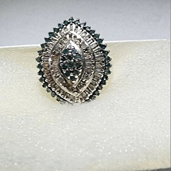 2 CT White Baguette & Blue Round Genuine Diamonds set in Platinum Embraced Sterling Silver 925 marking EUC