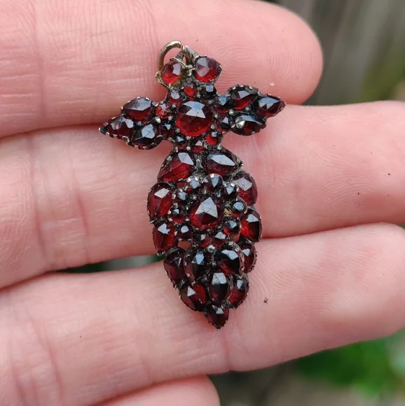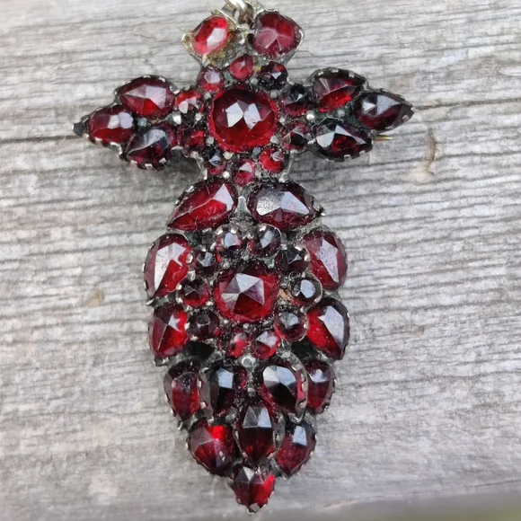 gorgeous rare antique Bohemian czech Garnet unusual cross pendant that someone also made into a brooch MOST REASONABLE OFFERS ACCEPTED!!!Other listings:Diamond antique boho coral ruby 14k 18k Cute Art Deco larimar lapis solitaire morganite pendant sterling halo princess birthday anniversary turquoise aquamarine date night crystal 24k gemstone abalone pearls signed Beautiful girlfriend mom birthday anniversary natural stone colorful bright casual dressy alloy silver perfect excellent condition 925 embellished whiting and David formal simple fancy bling 10k 12k gift sister Christmas present bling Tiffany coral beautiful eccentric hippie mothers day