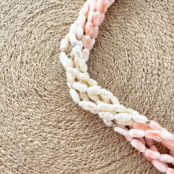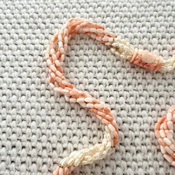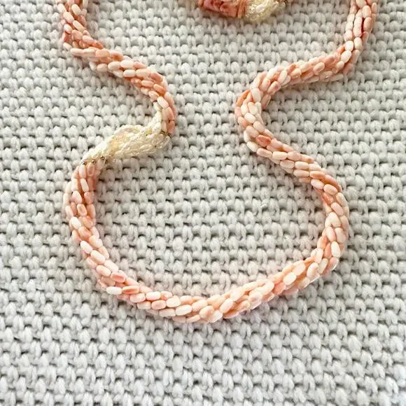 Vintage Angel Hair Coral Multi Strand Twisted Beaded Necklace Carved Bead Pink