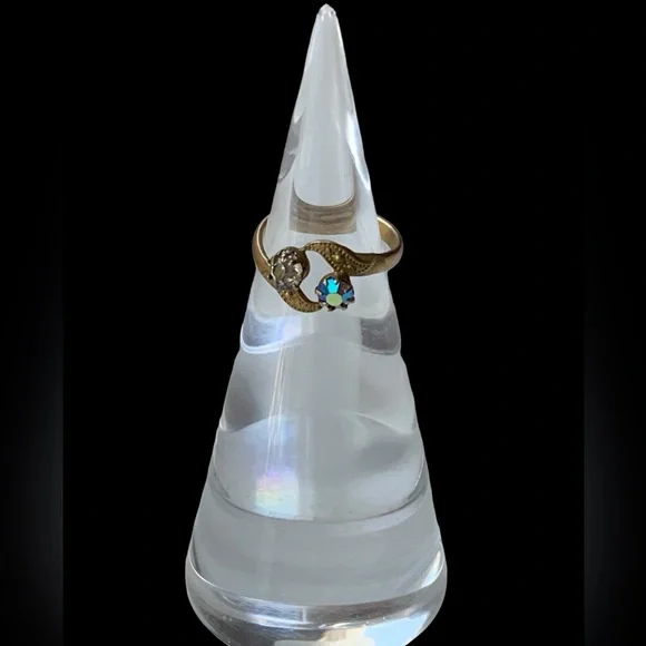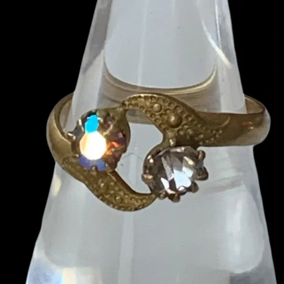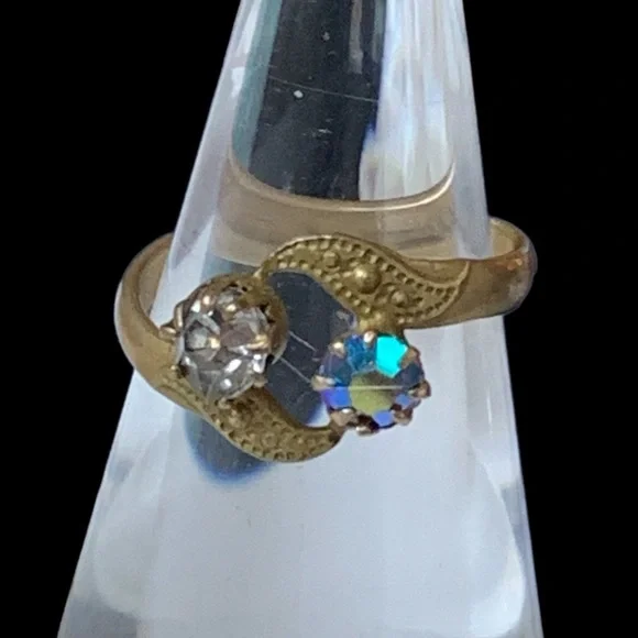Antique Czechoslovak Art Nuevo Crystal Gold Woman’s Ring Jewelry 1920’s Era