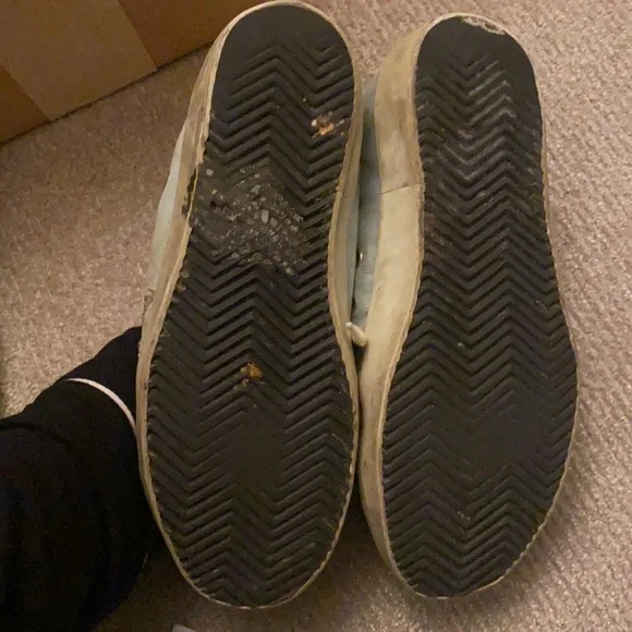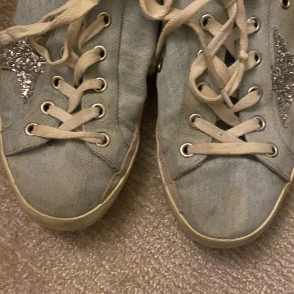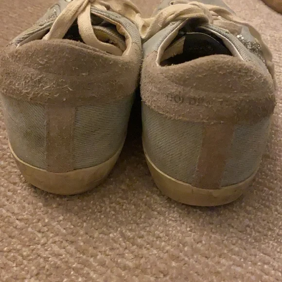 Golden Goose size 7. Denim with silver star sneakers. Worn with love. See photos. Minor staining. Have life left in them!!