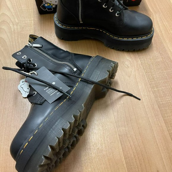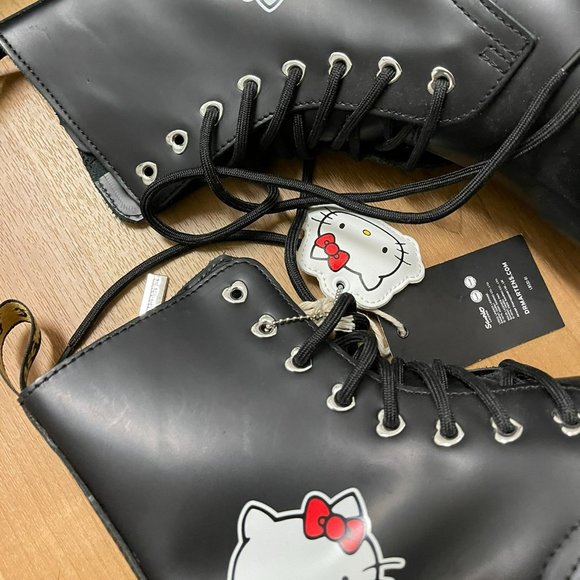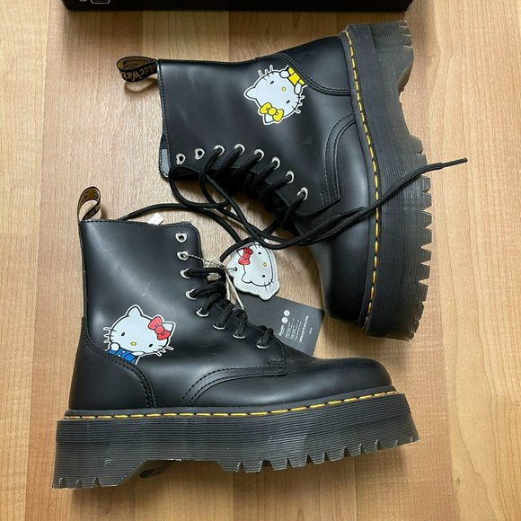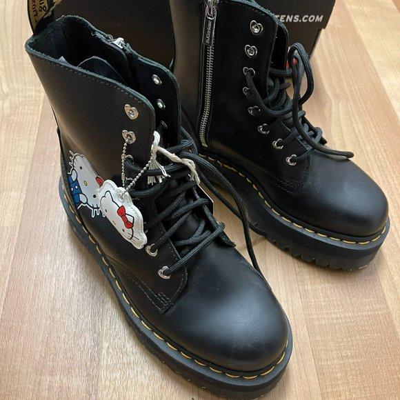 Dr.Martens Hello Kitty Jadon BootsSize: 7in women’sColor: BlackBrand:Dr.martensLike new condition in box.Never been worn out. Sold out everywhere rare limited edition Sanrio x hello kitty x doc martens collaboration.Kawaii anime leather boots hot topic killstar disturbia dollskill current mood sugar thrillz platform.