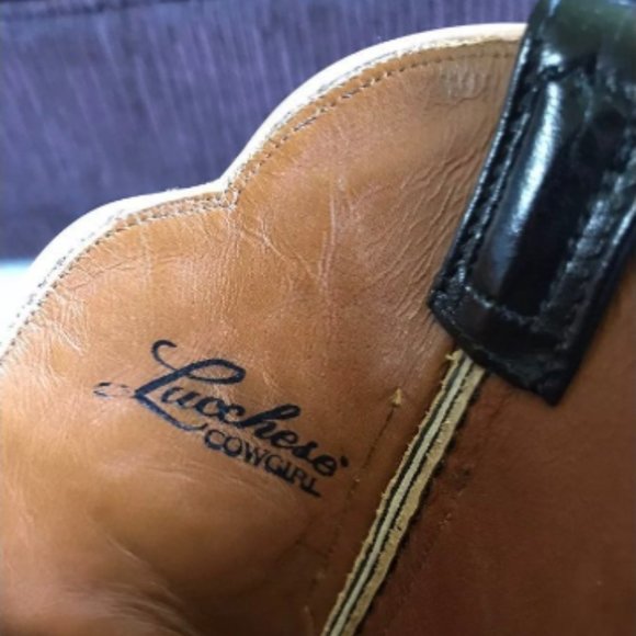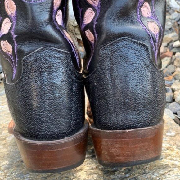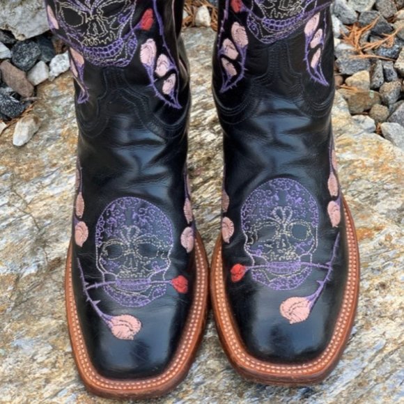 Good conditionLucchese 7.5 Skull Western Cowboy Boots Embroidered Stingray Day Of The Dead. Rare boots. Size 38.This style boot was only offered for a short run which makes them rare and hard to find. Comes from a smoke free pet free home.