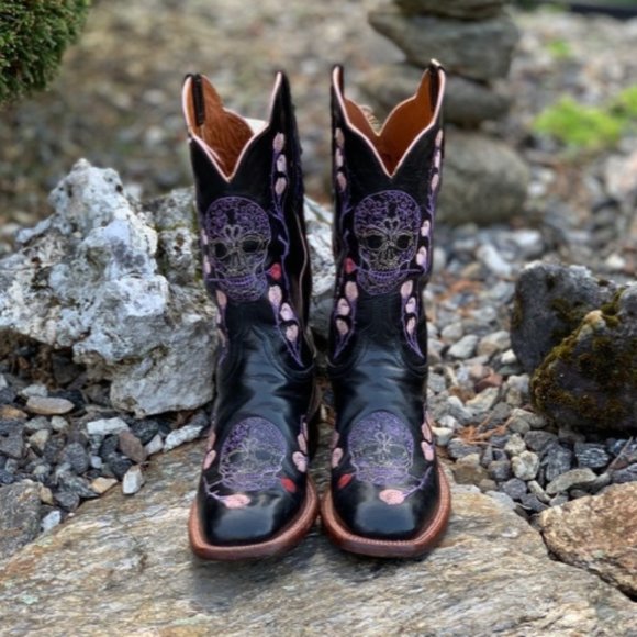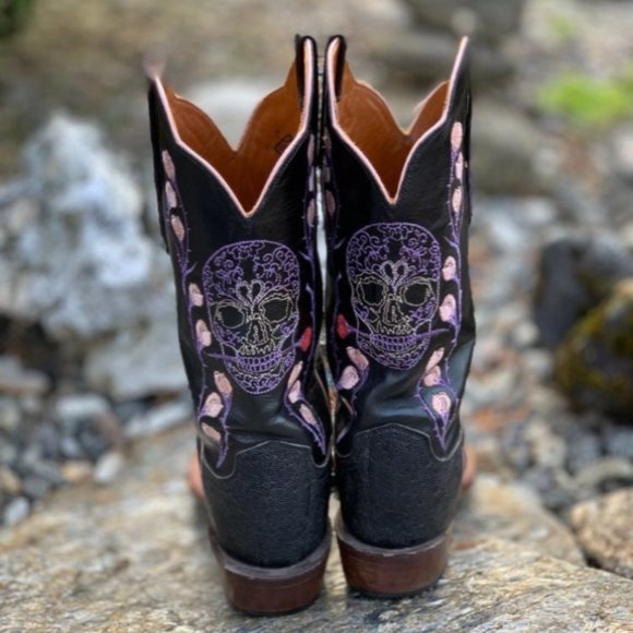 Lucchese Skull Western Cowboy Boots Women 7.5