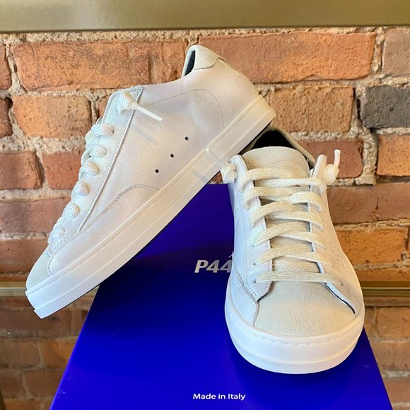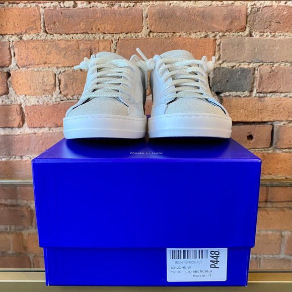 Brand- P448Size- 36Color- White/ Iridescent Condition- Brand new, never been worn, in original condition with original boxMaterial- Genuine Leather100% made in italy True to fit & extremely comfortable!