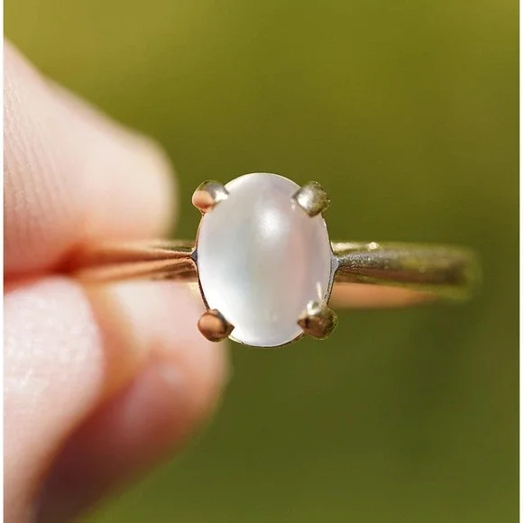Vintage 14k Solid Yellow Gold Natural Moonstone Ring - Size 5.5