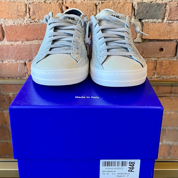 Brand- P448Size- 36Color- Silver & White LeopardCondition- Brand new, never been worn, in original condition with original boxMaterial- Genuine Leather100% made in italy True to...