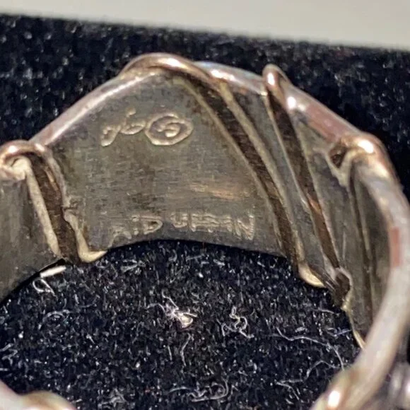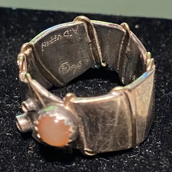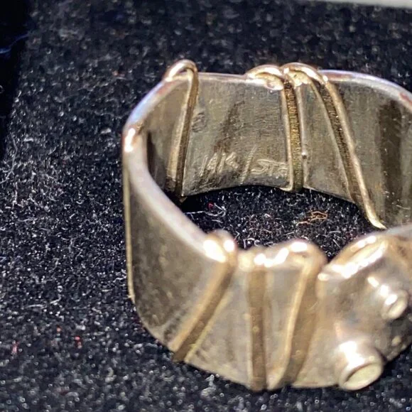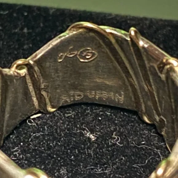 This vintage Angela Duffin sterling silver ring, possibly Ethiopian opal, features alluring gold accents. Size 5 and weighing 6 grams, it´s a piece of 90´s elegance with a tested 925 silver purity.• Brand: Angela Duffin• Color: Silver, Light Orange• Size: 5• Style: 6 grams, Sterling Silver, Gold Accents• Material: Sterling Silver, Possibly Ethiopian OpalFeatures:• 6 grams, Sterling Silver, Gold AccentsSize: Womens 5Condition: Pre-Owned GoodSee pictures.Visit our LinkTree site for our contact and other information about K & L Resale!!!https://link tr.ee/kandlresale