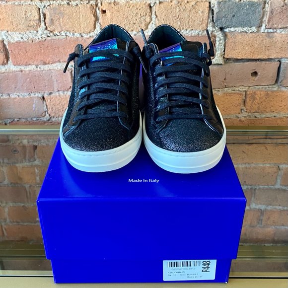 Brand- P448Size- 36Color- Black SparkleCondition- Brand new, never been worn, in original condition with original boxMaterial- Genuine Leather100% made in italy True to fit & extremely comfortable!