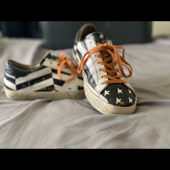 Selling these cool looking golden goose!Used for quite times, but they’re not all. These are supposed to look like old shoes. A small scratch in the front of the shoe, but not a...