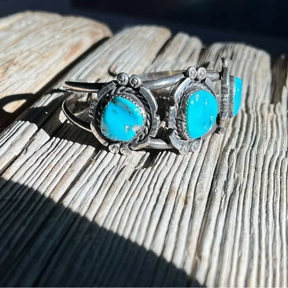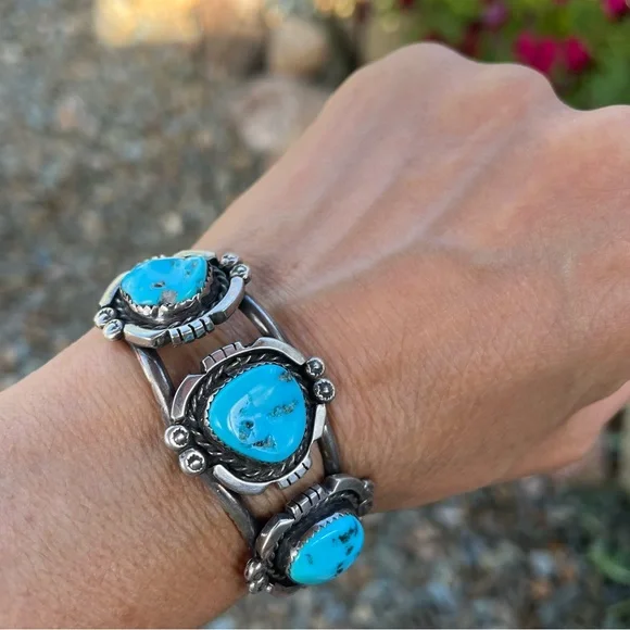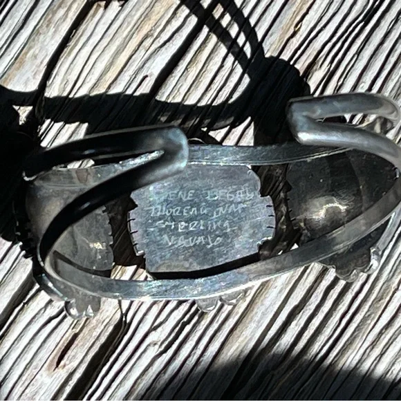 Gorgeous, handmade, authenticVintage Navajo Turquoise Sterling Silver Cuff, 3 stonesMarked by Artist:“Irene BegayThoreau, NMSterlingNavajo”Inside circumference with gap 6...