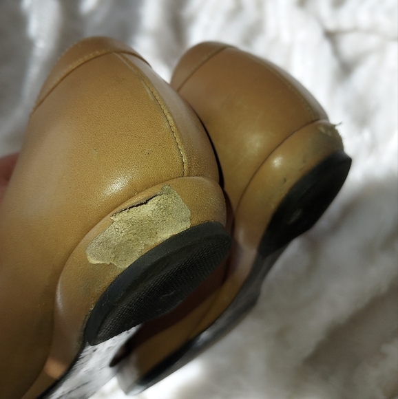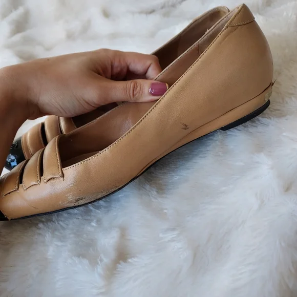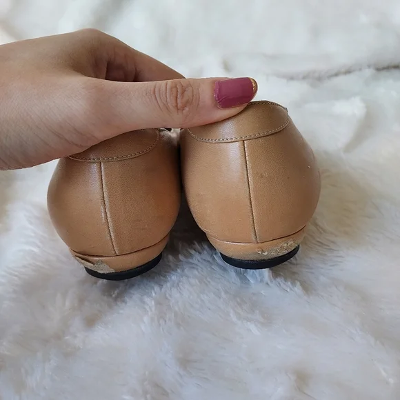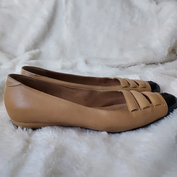 Authentic Tan Leather flats with black toe cap, size 37.5 / 7