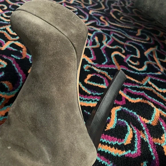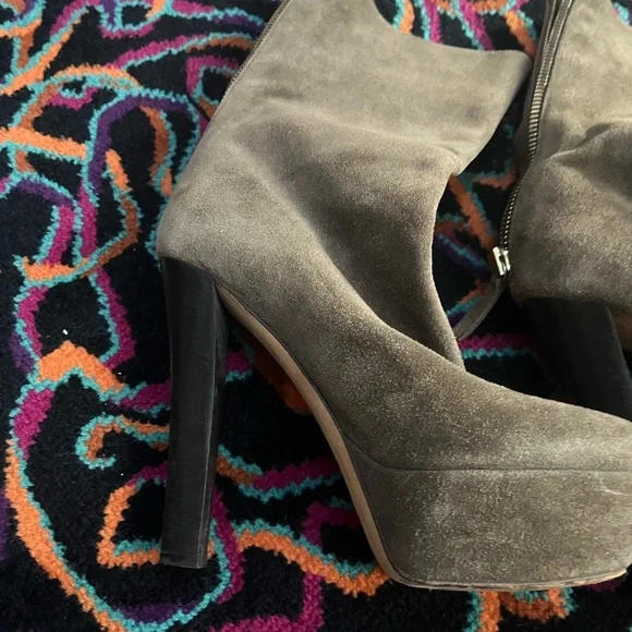 These are great the heelIs high as is the platform Platform is 1.5 “ heel is 4”+These are beautiful Rounded toe Only worn once Agorgeous green gray suede Just lovely boots . A...