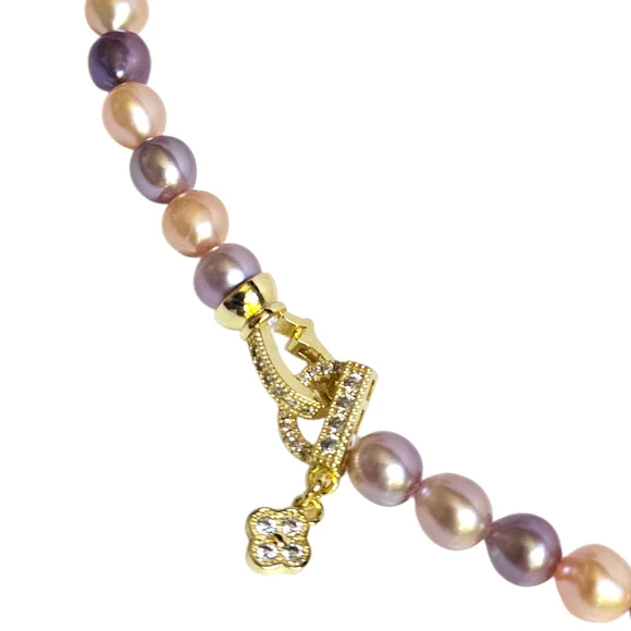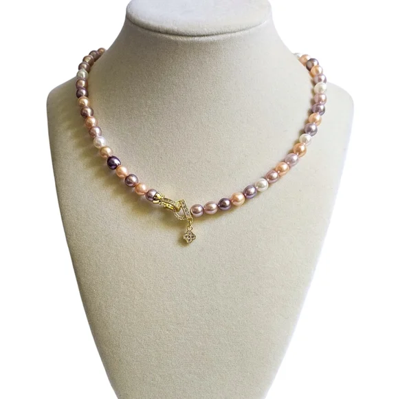 This exquisite necklace showcases a harmonious blend of white, pink, and gray pearls, elegantly strung on a fine silk thread. The small, uniform pearls create a timeless look, enhanced by a luxurious gold clasp, making it perfect for both formal and casual occasions.❤ 6.5-7.5mm Genuine Freshwater Pearls❤ Hypoallergenic Setting❤ 16.5 inches in Length❤ Handcrafted in the USA