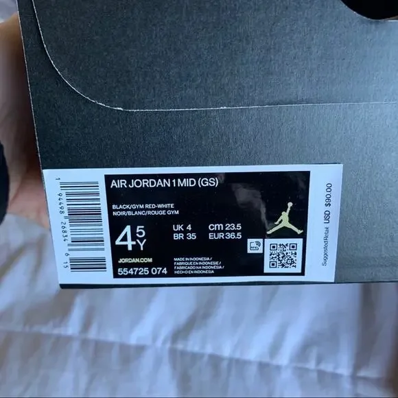 Air Jordan 1 mid banned 4.5Y GS/ 6 womens