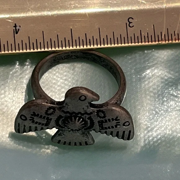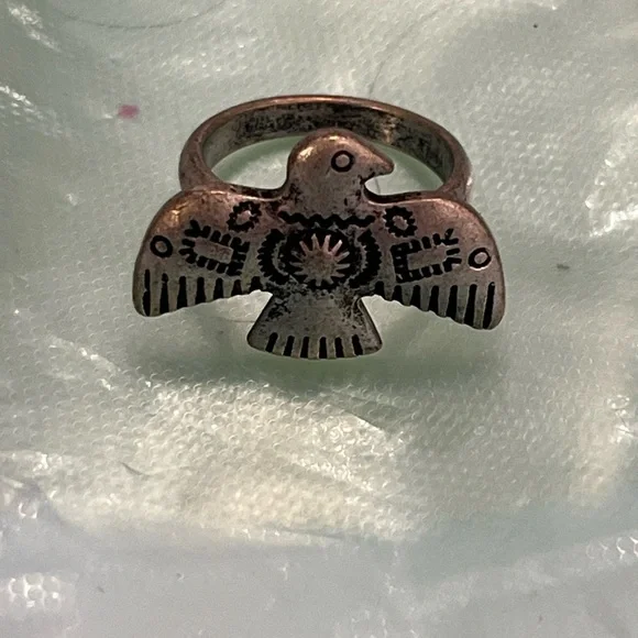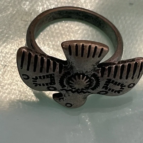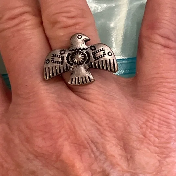 THUNDERBIRD NAVAJO MADE PEWTER RING, good condition, beautiful sz7.5