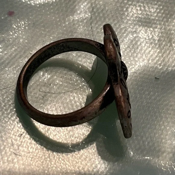 NAVAJO THUNDERBIRD PEWTER RING, sz7.5