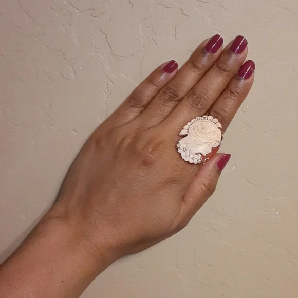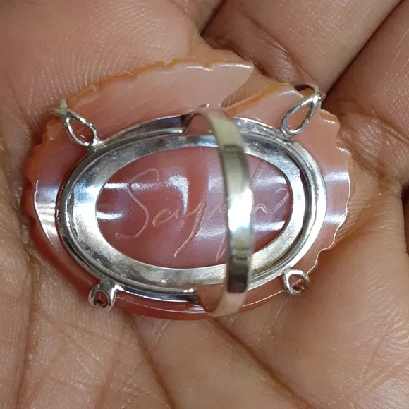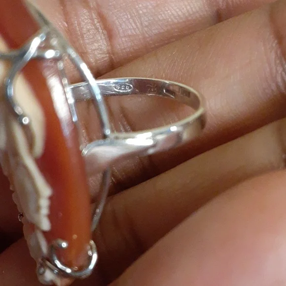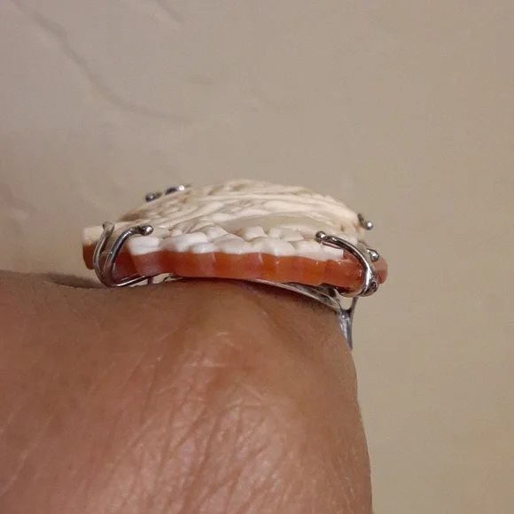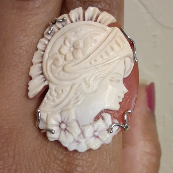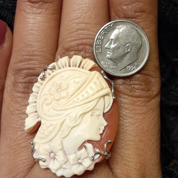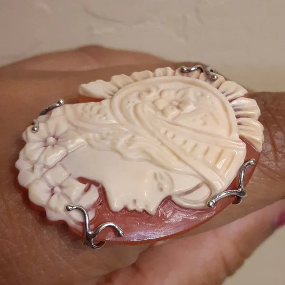 Excellent Condition, Like New.The carving on this Cameo is truly stunning and definitely a work or art. Bought from a Home Shopping Network in the United States.Invest in Quality, Heirloom jewelry that you will love to give as a gift or own yourself.FIRM.
