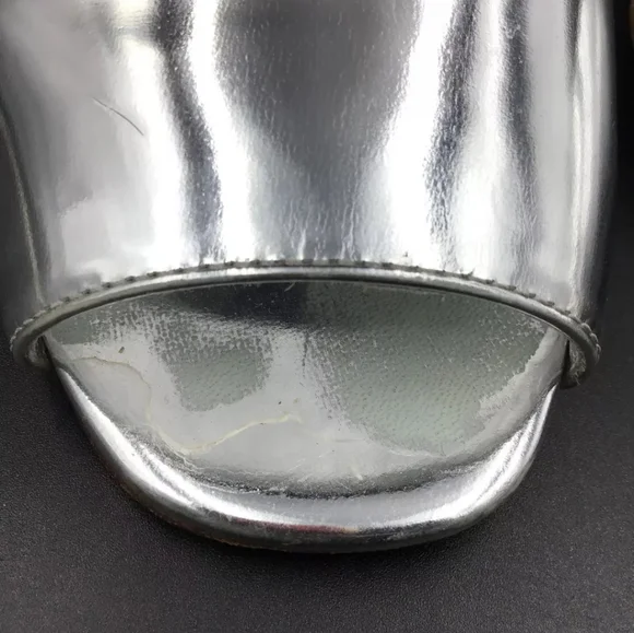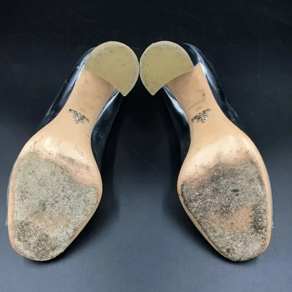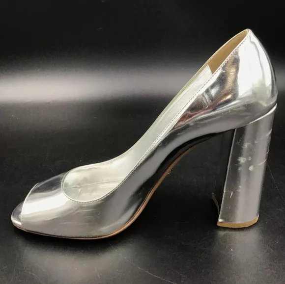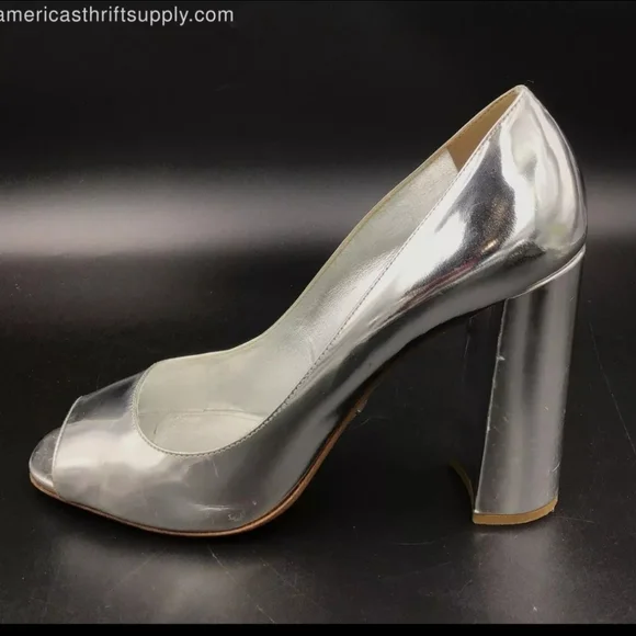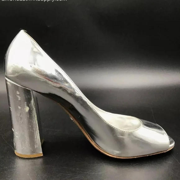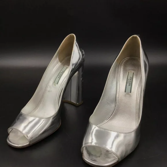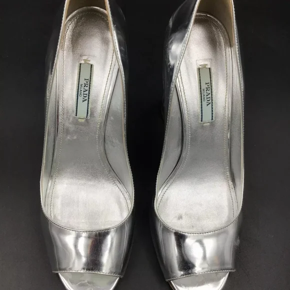 Prada Women´s Silver Platform Heels with Leather Interior - Size-39 ✅ Certificate of Authenticity Included Type & Color: Platform Heels, SilverStyle: PlatformCondition: Good - shows sign of normal wear: Scratches and scuff marks on the exterior, toe marks/prints on the interior, and visible wear on the bottom. (see photos)Box Not IncludedSize: 39 as marked on shoeHeel Height (in inches): 4"Condition of item is as pictured. Some scratches, scuffs, and other blemishes may exist in keeping with the item´s age. Please see images for added detail