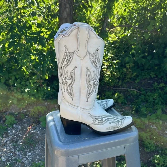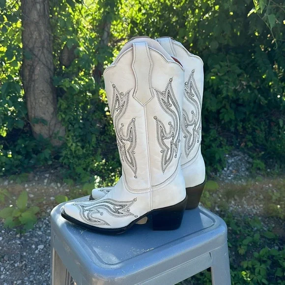 Planet Cowboy White rhinestone cowgirl boots