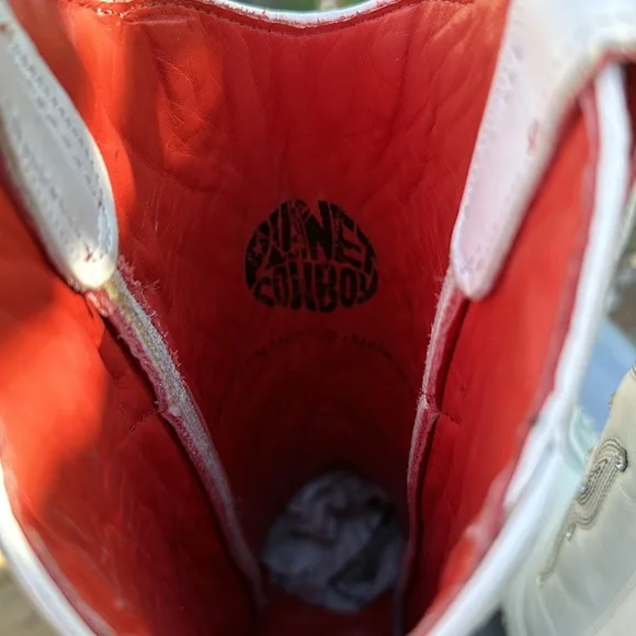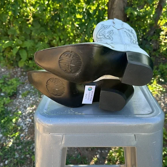 These brand new Planet Cowgirl boots were a floor samples. They have marks on them please make sure you look at the images. Size 6 and super comfortable. The heel is 2 inches tall. All Planet Cowboy boots are 100% leather inside and out even the heels are stacked leather . Sole is 100% leather. There is an added cushion for comfort.