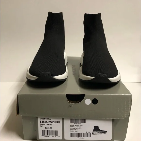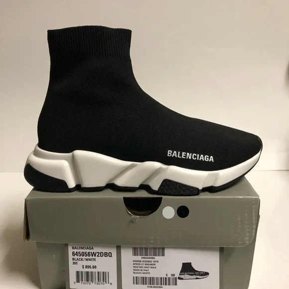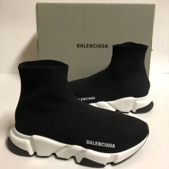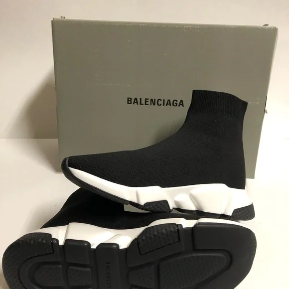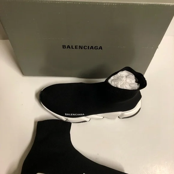 Balenciaga Speed Trainers Black White Women Size 9 NDS BTS Sock Sneakers