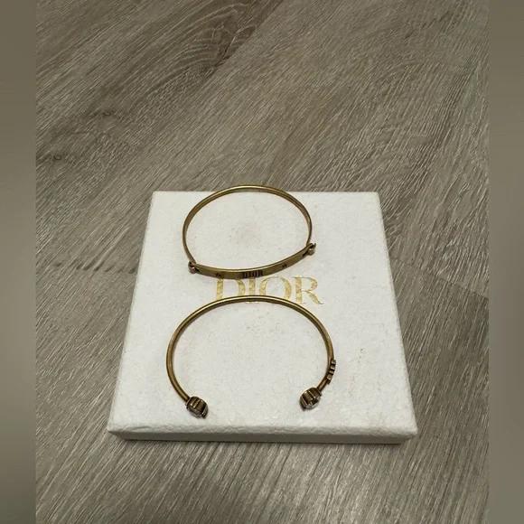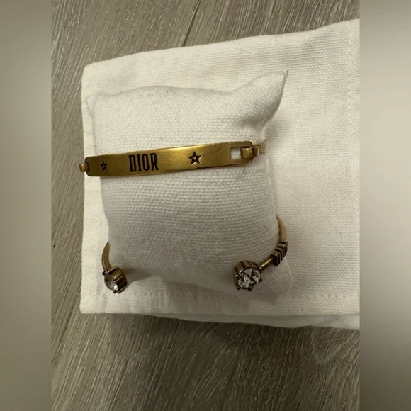 SET OF TWOBRACELETS : LOST ONE GREAT CONDITION Elegant Dior bracelet. Features gold tone with crystal accents. Comes with branded box and pouch.