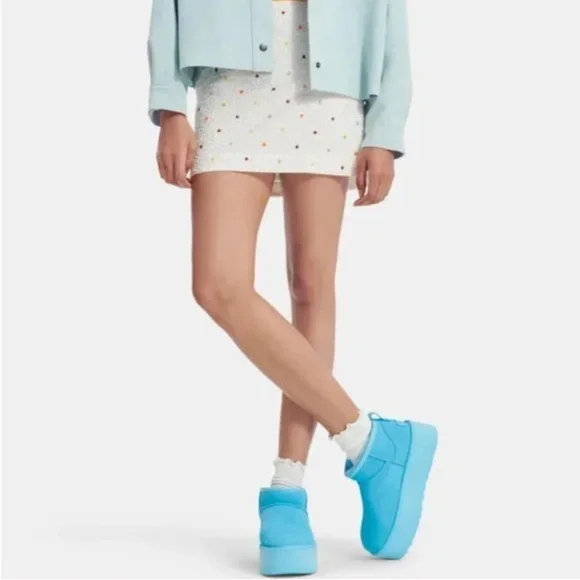Brand new. SOLD OUT on website! A modern interpretation of Ultra Mini reaches new heights with a leg-lengthening 2"" platform. Offering a bolder look than ever, it´s made with the same rich suede as the original, plus our UGGplush™ wool blend for signature softness.The outsole of this product is either a SugarSole™ outsole, which is a responsible compound using sugarcane foam that allows us to reduce dependency on fossil fuels by replacing petroleum-based ethylene, or a Treadlite by UGG™ outsole. Treadlite by UGG™ Proprietary compound which increases cushioning and traction for a supremely lightweight, ultra-durable sole.Suede upper Overlock stitch detailing on seams, Rear pull tab, Asymmetrical topline 17mm UGGplush™ 80% upcycled wool, 20% lyocell lining or 17mm UGGplush™ 60% upcycled wool, 40% lyocell lining 17mm UGGplush™ 80% upcycled wool, 20% lyocell insole or 17mm UGGplush™ 60% upcycled wool, 40% lyocell insole EVA midsole Treadlite by UGG™ outsole for comfort Polyester
