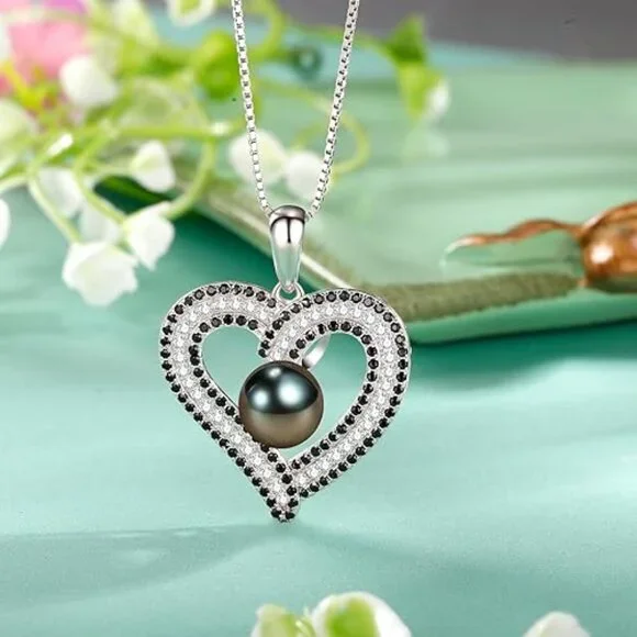 Black pearl heart necklace pendant is made of 18K Gold Plated 925 sterling silver.Attention pleases: Most Tahitian Pearl Jewelry pearls that are identified as “black” are actually charcoal grey or dark green. All pearls are imported from Tahiti, each Tahitian pearl necklace has official certification.black natural pearl pendant necklace jewelry for women anniversary gifts for herPERFECT JEWELRY GIFT: Packaged in an elegant box, this 18K gold plated 925 sterling silver pearl Heart pendant necklace is an elegant jewelry gift for an Anniversary, Birthday, Engagement, Valentine´s Day, Mother´s Day, Christmas, or just any occasion and is a classic Infinity heart necklace gift for any Woman such as a Bride, Bridesmaids, Fiancée, Wife(Wifey), Girlfriend, Daughter, Granddaughter or even a GrandmotherTahitian South Sea pearl necklace is the ultimate jewelry for women, also as Christmas gifts Christmas Pearl Pendant Necklace, Mothers day gifts for mom , Birthday gifts for women, Wedding anniversary gifts for wife girlfriend best unique thanksgiving gifts from daughter son romantic love valentines day gifts for her ladies or simply, "Just Because", ensuring smile on your loved one´s face Ladies Fashion Necklace.