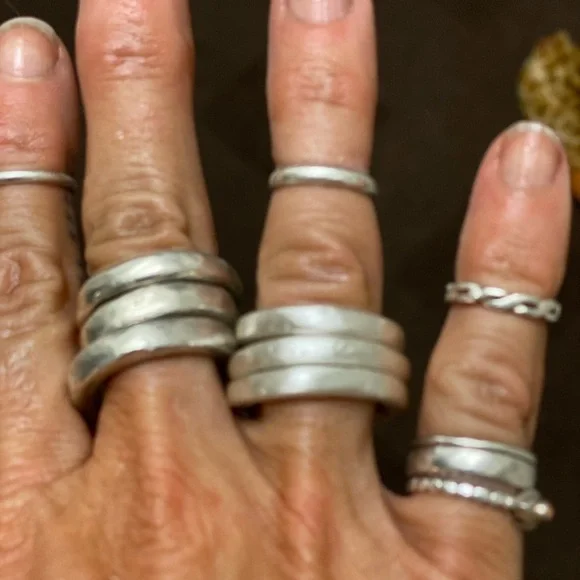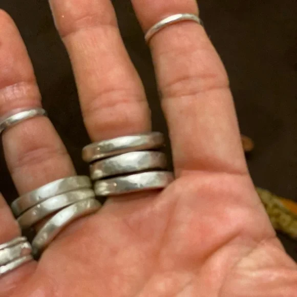 I’ve had so many requests for these that I’mFinally offering them in all sizes. . I’ve been wearing mine for about 5 years now. These are heavy and quite rustic. They only get better with wear. I Never take them off. I sleep, shower, swim, and play in them everyday. It takes hours to make each set from start to finish. These are One of a kind sets. I Sand cast them , shape and polish each ring. They aren’t an exact size as each one fits a bit differently I make them in a graduated size for a comfortable fit. :) *RUSTIC LUXE*