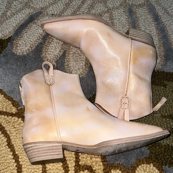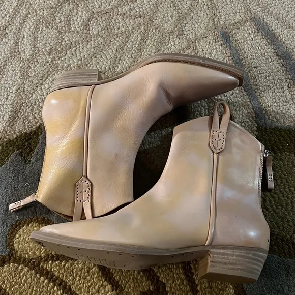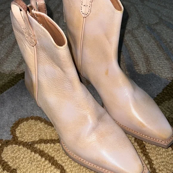 From websiteYour new go-to boot all season long, these western-inspired leather boots from our We The Free collection are featured in a short silhouette with square pointed toe and contrast sole for added dimension.Back zip closureHand-stitched detailing throughoutUnique studded bottom soleSpecially designed side tabsFit tip: This style runs true to size, if in between sizes; we suggest sizing up.Please Note: The leather is hand finished and each pair of boots is unique, what you receive may differ slightly from the photo.Made in PortugalMarked on sole as seen to prevent store returnsBrand new!Color as seen in pics- may vary slightly due to lighting and camera