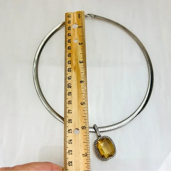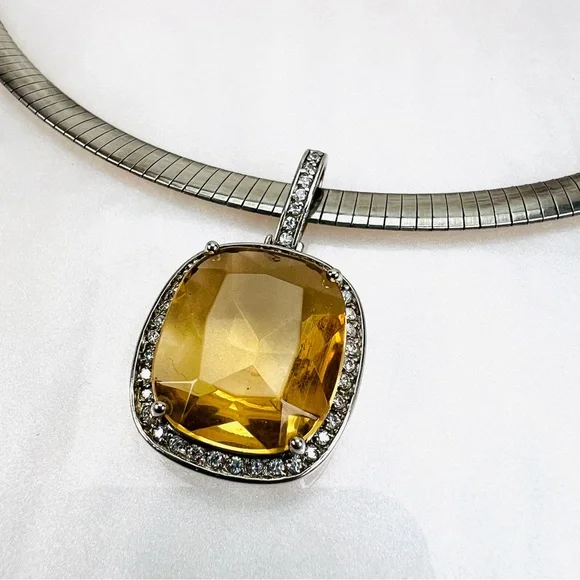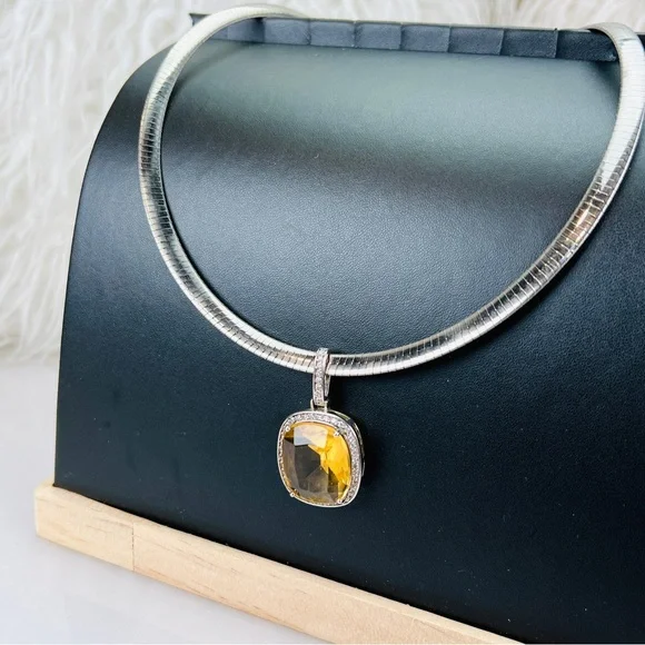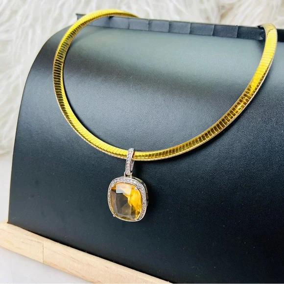 Vintage Aurafin Italy two tone necklace + a smoky stone bling pendant