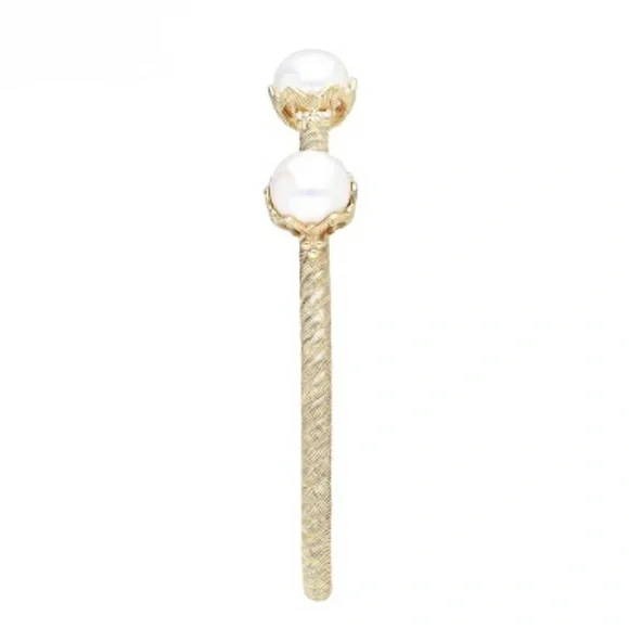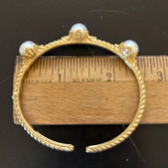 Judith Ripka Cuff Hinge Cuff BraceletThree 12mm Cultured Freshwater Pearls 0.20ctw CZ/Diamonique/Bella Luce (Diamond Simulant) 14k Yellow Gold Clad over sterling silverMeasures Approximately 6.75"L x 0.37"W.