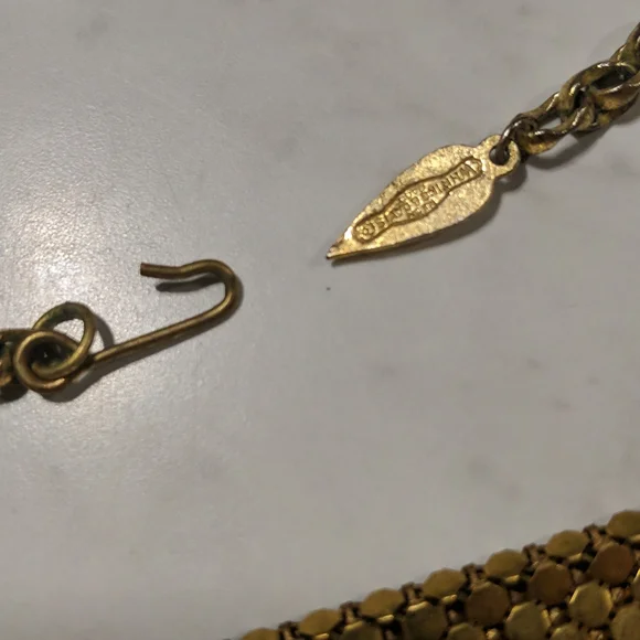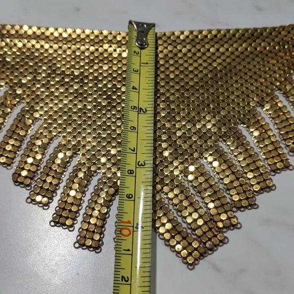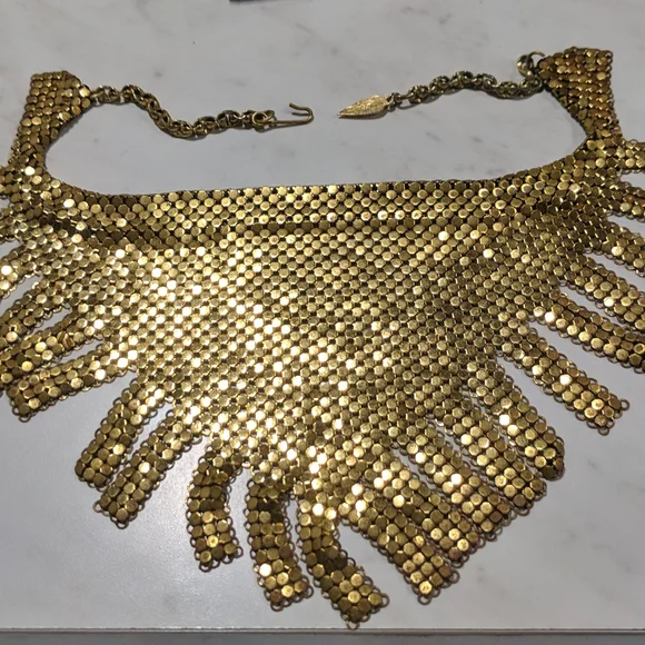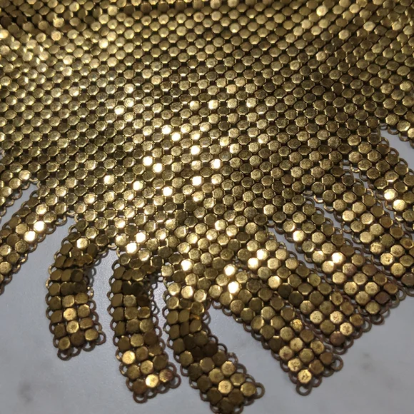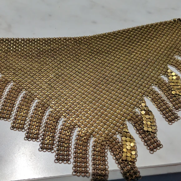 This piece is RARE I don’t see too many with Whiting and Davis bibs with this cut!In great used condition!Showing its authenticity and its age!! Beautiful patina!Looks so glam on!