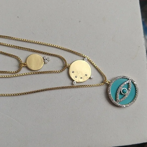 Sign up forusing my code TRAVELINGFROG to get $10 off your first purchase!marked fr 925 sterling silver gold plated new with tag Freida rothman chain necklace layer layered evil eye lucky eye turquoise color enamel nwt new with tags old stock dead stockr4o1