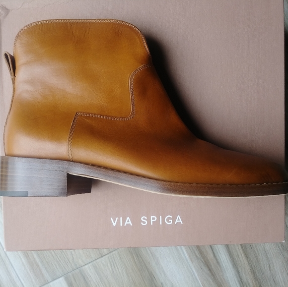 NIB SZ 9 Via Spiga Baxter Tan Leather Ankle Boots