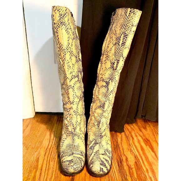 Vero Cuoio Tall Snakeskin Boots, Size 37