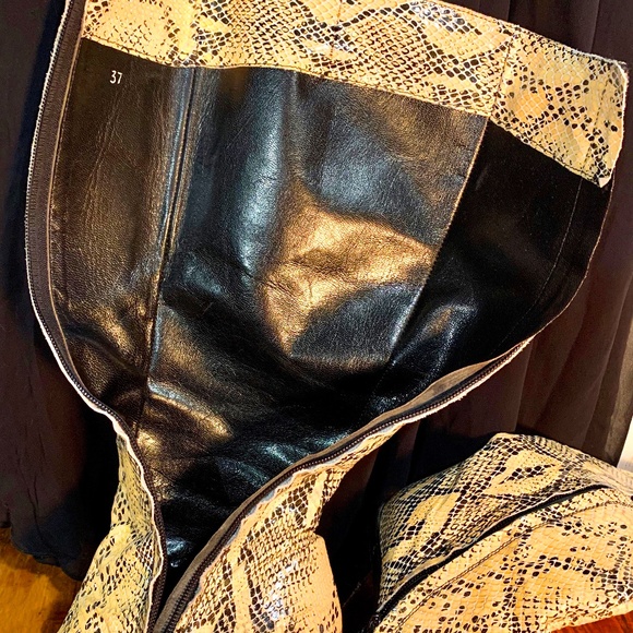 Vintage Vero Cuoio Tall Snakeskin Boots, Size 37. Made in Italy. In very good condition, minor scuffs on heels and rims, actual boots and interiors are in excellent condition. 3...