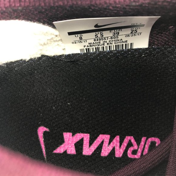 Nike Air VaporMax ´Berry Purple´ Women 849557 605Shoebox not in perfect condition.Brand Name: NikeGender: Women´sTechnology: Max AirClosure Type: Lace-UpSports Type: VaporMaxUpper Material: FLYKNITApplicable Place: Hard CourtShoe Width: Medium(B,M)Feature: BreathableUpper Height: LowInsoleMaterial: EVAFit: Fits true to size, take your normal sizeFunction: StabilityRelease Date: 2017Model Number: 849557 605Outsole Material: RubberColor:´Berry Purple´