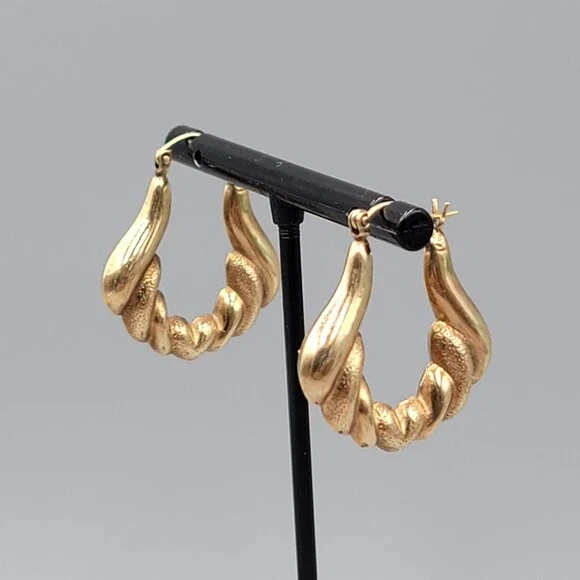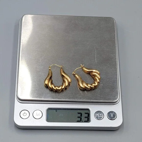 Vintage Solid 14k Yellow Gold Puffy Hoops Pierced Earrings 3.3 grams 1"