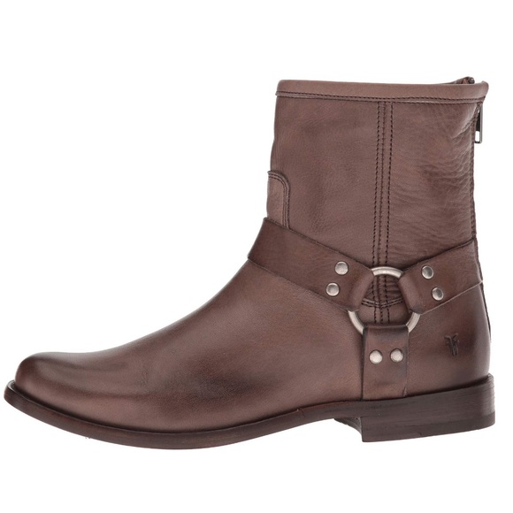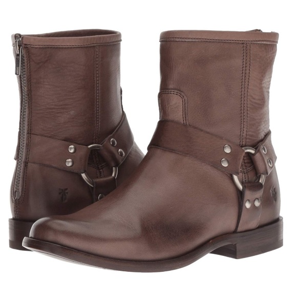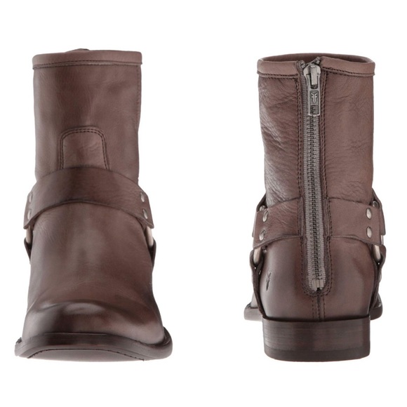 BRAND NEW in BOX: You will love the rich leather feel and equestrian-inspired construction of the Frye® Phillip Harness Short boot.- Waxed vegetable Italian calf leather upper- Harness accent has an equestrian-like vibe- back zipper for easy on & off- Smooth leather lining for comfortable climate- Cushioned leather insole for all-day comfort- Long-lasting leather outsole with rubber heel insert for added durability & traction- Heel: 1”- Circ. : 11”- Shaft: 6.5”- Price FIRM82 IRUR