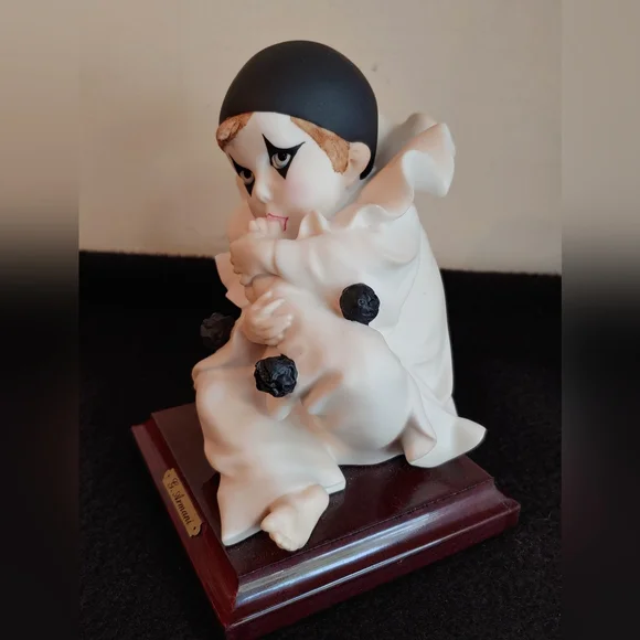Porcelain Statue Pierrot Armani Gisseppi Porcelain Mime Figure Signed
