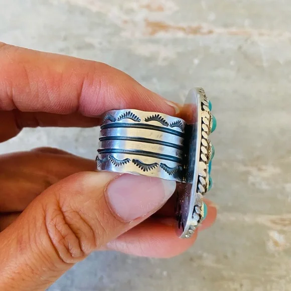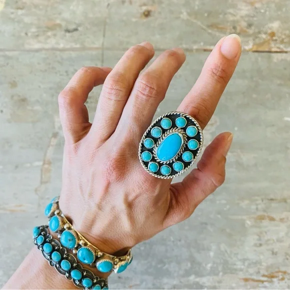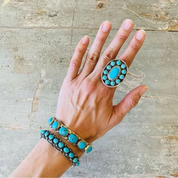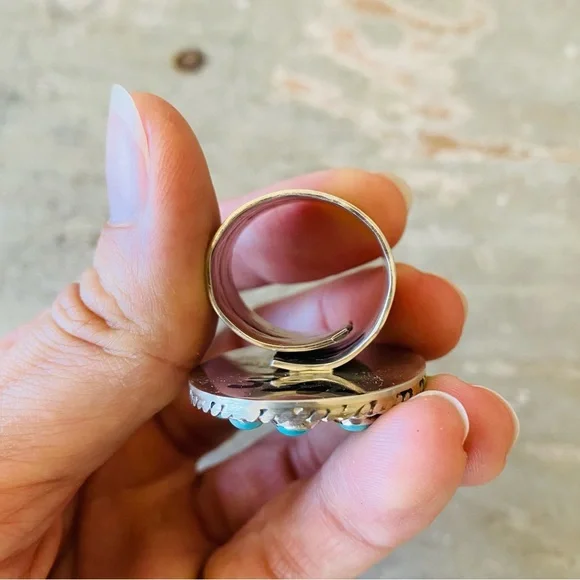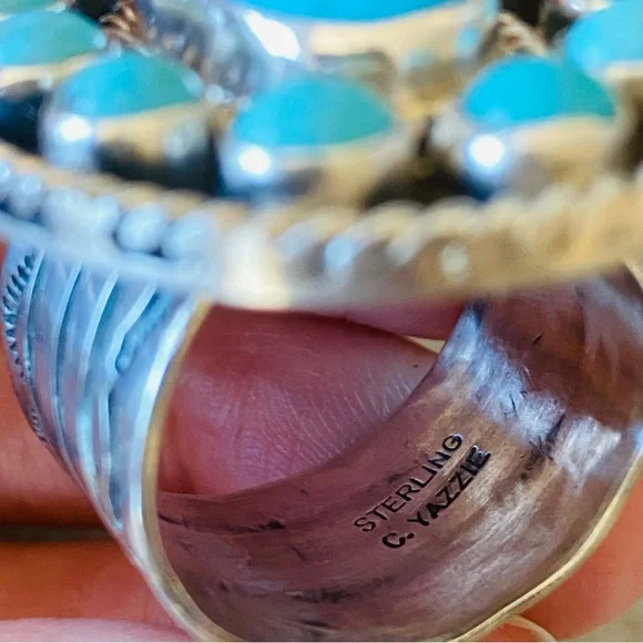 ♥️ Navajo ♥️ Charlene Yazzie Sterling Silver & Turquoise Ring!CONDITION: Brand new, handmade! Stamped STERLING and signed C. YAZZIE! Gorgeous! See photos!Retail $330! SIZE: Adjustable (currently set to 8 1/2, but let me know what size you need)This is only for one ring, the other items are up separately! I have multiple Native American, Navajo, Zuni, Taxco, antique, vintage, and other designer items if you want to check out my other listings!Sorry, no trades! Same day shipping when possible! New items posted every week! Any questions, let me know! ♥️