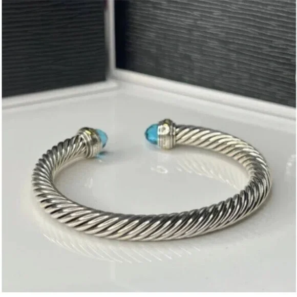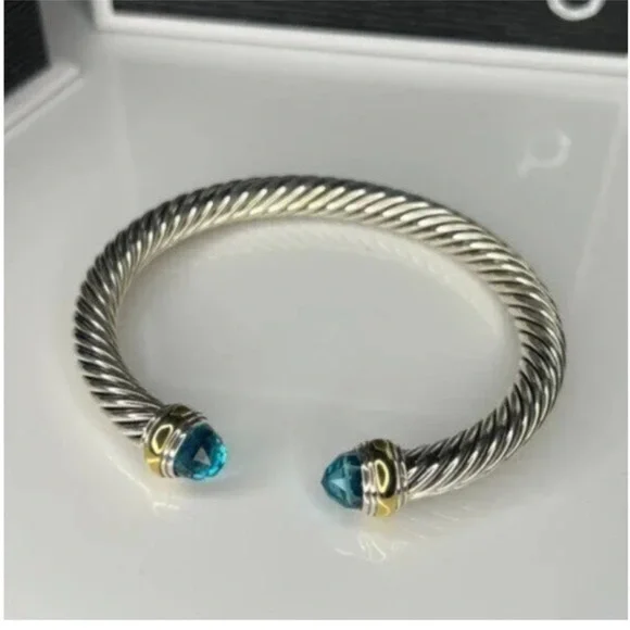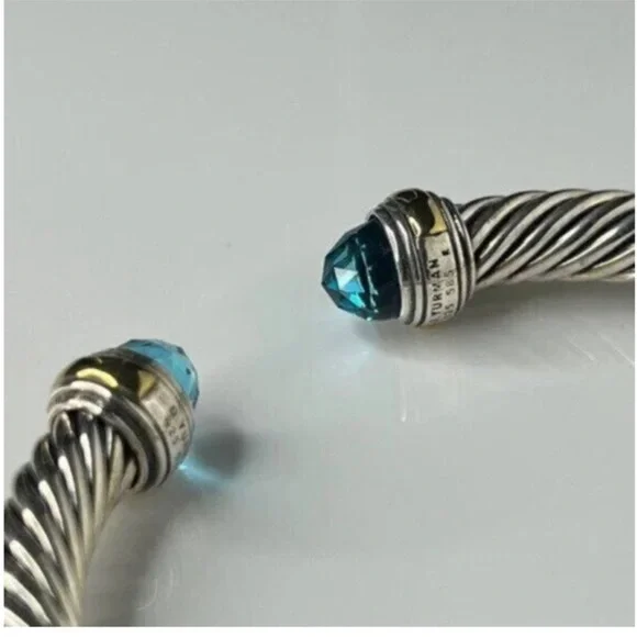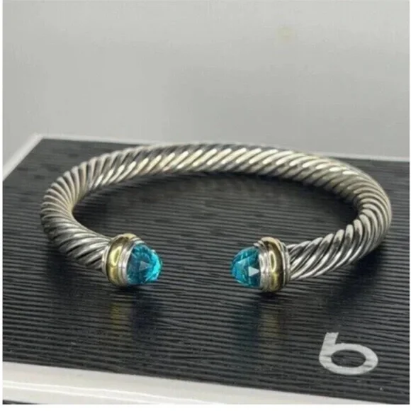 David Yurman Elegant Silver and Gold Bracelet with Blue Accents 7mm