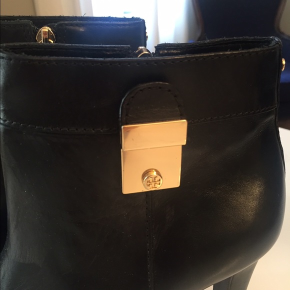 Brand new black Tory Burch heeled booties with gold tone hardware. Never worn, just need to clean out my closet!