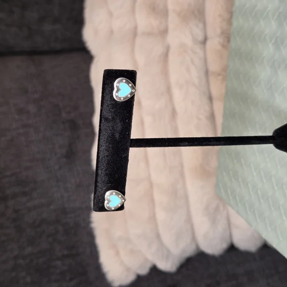 Charming heart-shaped earrings with a turquoise center. Perfect for adding a pop of color to any outfit.