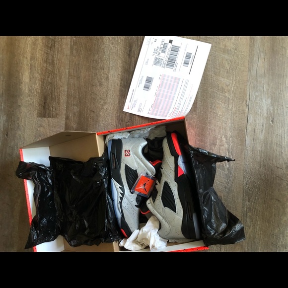 The Neymar x Air Jordan 5 Low features a full 3M reflective Cement Print upper that includes Infrared accents, Black detailing, the number 10 and 23 on the left and right side as...