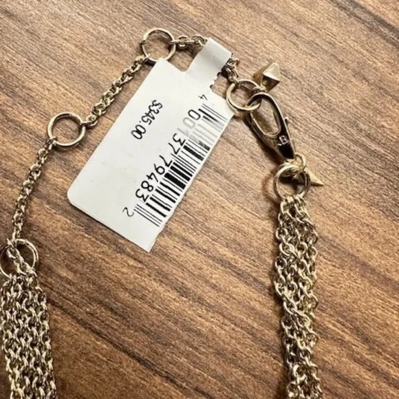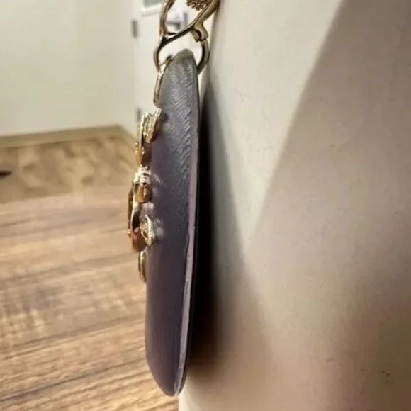This stunning Alexis Bittar necklace features a bold purple pendant adorned with intricate gold-toned accents. The pendant is suspended from a classic gold link chain, creating a striking and elegant contrast. Perfect for making a statement, this piece adds a touch of sophistication to any outfit. New with Tag.
