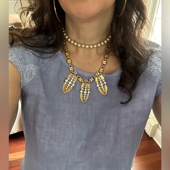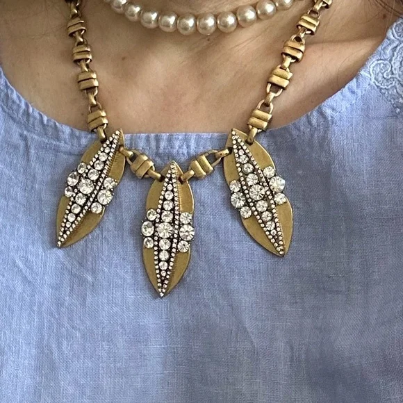 J Crew Necklace Rhinestone Gold Metal Vintage